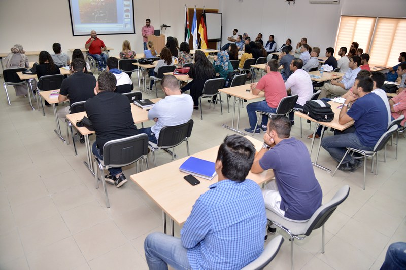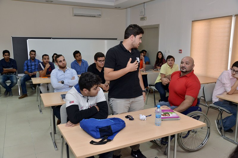 The Deanship of Students Affairs organized in cooperation with the Supreme Council for People with Special Needs a lecture by the World Champion in Weight Lifting champion for people with special needs, and Master degree holder in Accounting, Mr. Mo’taz Junaidi.