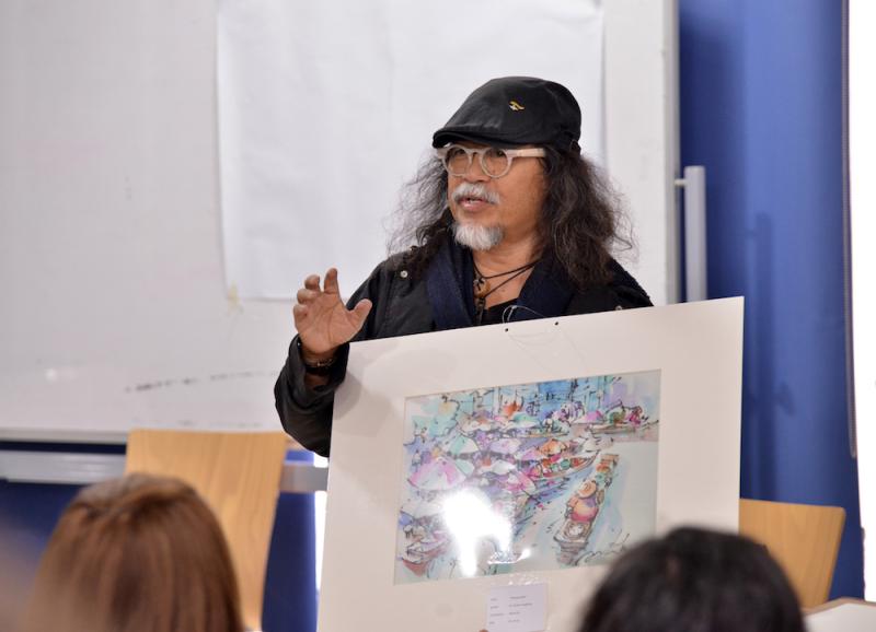 In collaboration with the Thai Embassy, the German Jordanian University and the American University of Madaba organized a workshop about watercolors given by a group of Thai artists who visited Jordan recently to participate in an exhibition that will be held at the Thai embassy on the occasion of the 50th anniversary celebrations of diplomatic relations between Thailand and Jordan.
