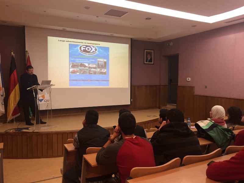 As Dr. Löbl explained in his presentation, Chance-Mall promotes the Arab region to small and medium-sized enterprises in Germany. These so-called Hidden Champions of the German economy provide cutting-edge technology to a global market. While largely unknown to the wider public, they can be global market leaders in their specific products. Dr. Löbl already has arranged a number of successful German-Arab partnerships, not only in the Gulf countries but also in Jordan. He now wants to help his clients, small and medium-sized enterprises in Germany, to develop new and expand existing partnerships with the help of GJU students, amongst others.