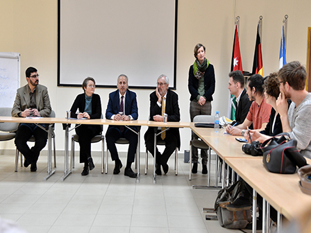 Prof. Abu Obeid welcomed the MA students who came from Humboldt University-one of GJU’s partners- and expressed his pride of this kind of cooperation between students from the two universities to conduct a joint research on water management in Jordan, saying that GJU believes in exchange and mobility.
