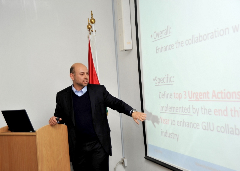 Since its establishment in 2005, GJU has been focusing on applied sciences and innovation. One of its core concepts is to build a close university-industry partnership in order to connect researchers, students and graduates with the private sector in Jordan, the region and Germany on different levels. Over the years, many collaborative activities with industrial partners from Jordan, Germany and the region were already successfully implemented at GJU. Hence, in line with the motto "together we can do it even better" the workshop aimed at defining the top priorities and necessary next steps to increase the collaboration with industrial partners at the University as a whole and at the different Schools.