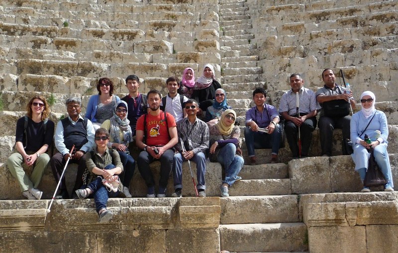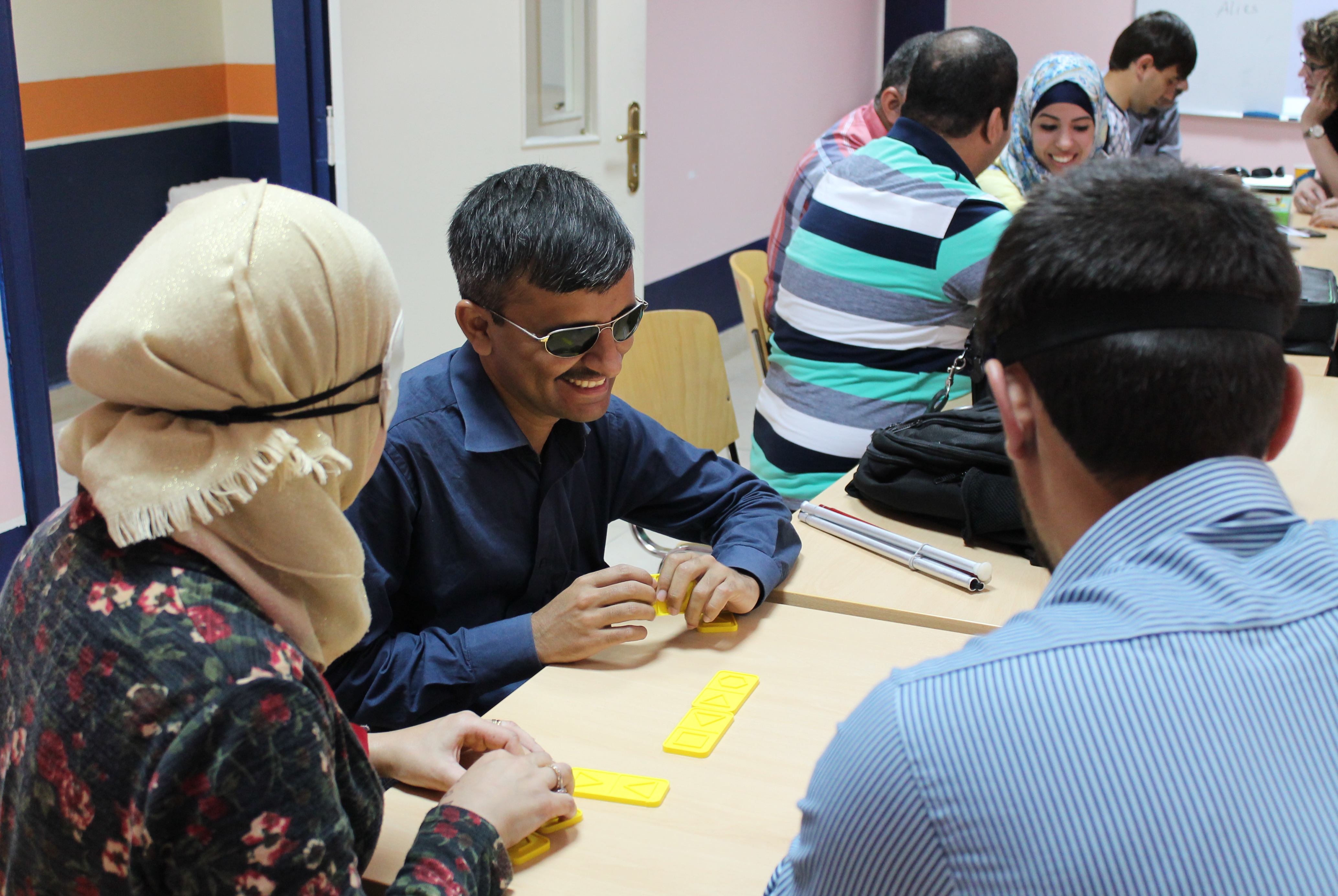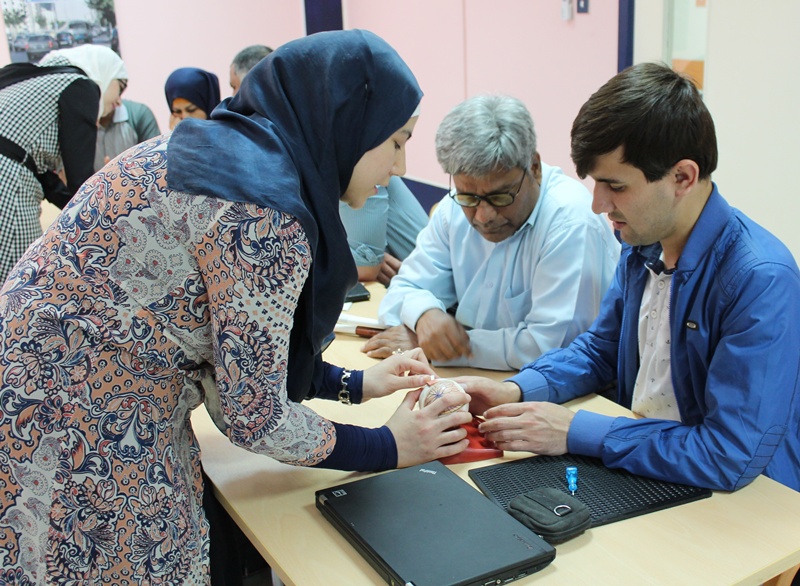 Since the 17th of April, the GJU Vision Training Center (VTC) is hosting the second of a series of four training courses for trainers from Afghanistan, Egypt, Jordan, Pakistan, Palestine (West Bank and Gaza) and Tajikistan. In addition to the cultural diversity, more than half of the participants are themselves visually impaired (7 of 13). Last week, the training was provided by experts from Royal Dutch Visio (Netherlands), while this week it is offered by the low vision specialists from the VTC. The project includes a third partner, CBM International (Germany based NGO).