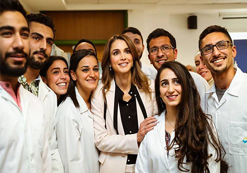 Her Majesty Queen Rania Al Abdullah visited the German Jordanian University’s (GJU) Madaba Campus on Sunday to support the University’s cutting-edge teaching initiatives, especially its collaboration with Edraak, the first digital platform for educational content in the Arab world.