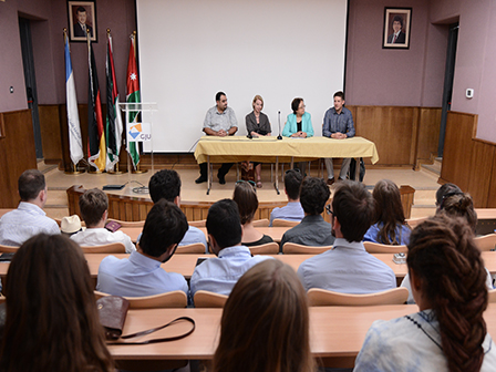 The group was first welcomed by Prof. Manar Fayyad GJU Vice President, where she introduced GJU for them, its schools, majors, features and the exchange year.