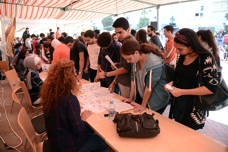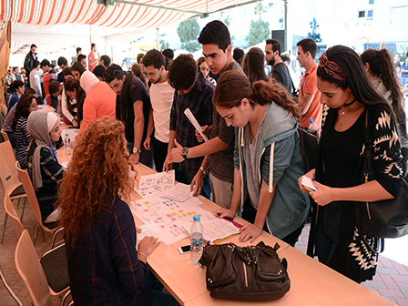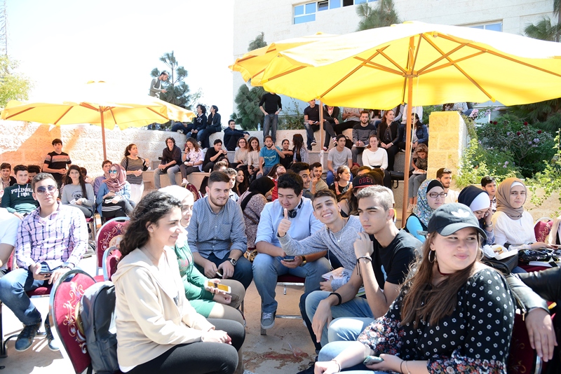 During the event, some representatives of GJU schools and other departments were ready to answer the students'questions about the programs, the courses and the registration process. The event included some music that played by a new GJU band in addition to a comedy show ( jwar w matabbat ) performed by the members of the dram club.