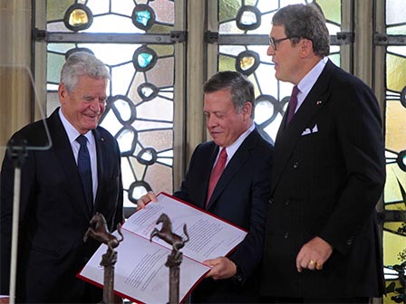 In his remarks at the ceremony, Gauck commended Jordan’s humanitarian role in the Middle East, stressing that those aware of the Kingdom’s efforts in shouldering the refugee burden cannot feel else but respect it and what it stands for.