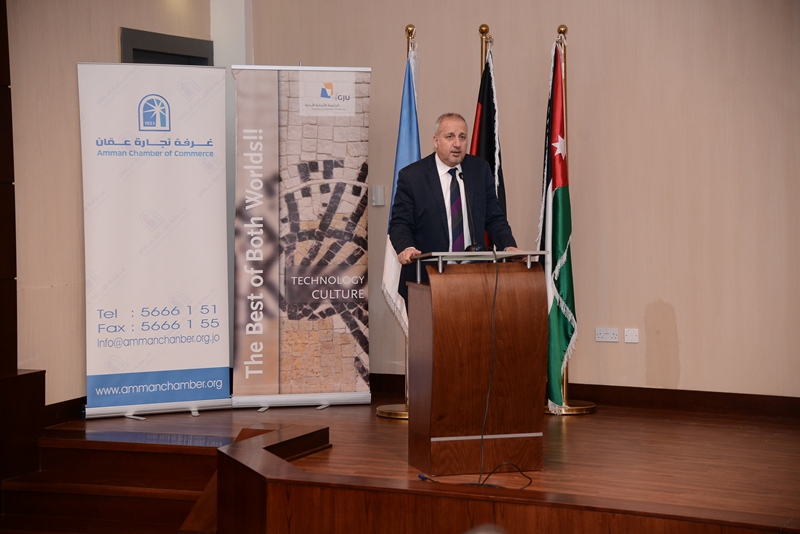 In his speech Mr. Issa Murad Chairman of Amman Chamber of Commerce ACC assured that this distinguished program represents a productive cooperation between ACC and GJU , where both sides worked hard together to come up with a positive results.