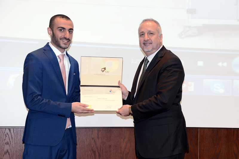Finally, Prof. Abu Obeid praised Sadeem’s remarkable accomplishment and presented to him the GJU shield and the certificate of excellence.