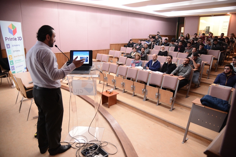 On November 28, the school of applied technical sciences (SATS) hosted an interactive 3D printing workshop lead by Eng Ahmad Alsousi, the CEO of printie3D company with the support of the Dean of SATS – Dr. Alaalden al-Halhouli and the Assistant Dean for Quality Assurance – Dr. Anas Atieh.