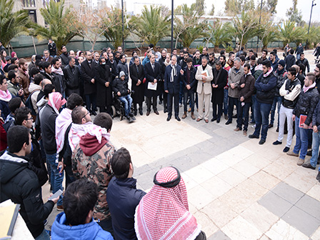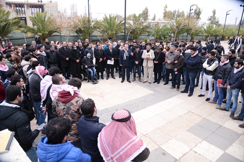 Professor Natheer Abu Obeid , President of GJU, Professor. Dorit Schumann, GJU Vice President of International Affairs, academic and administrative members and students have flocked to express their refusal of the terror attack in Al karak , appraisers the bravery of our security forces, and martyrs who gave up their lives for protecting Jordan.