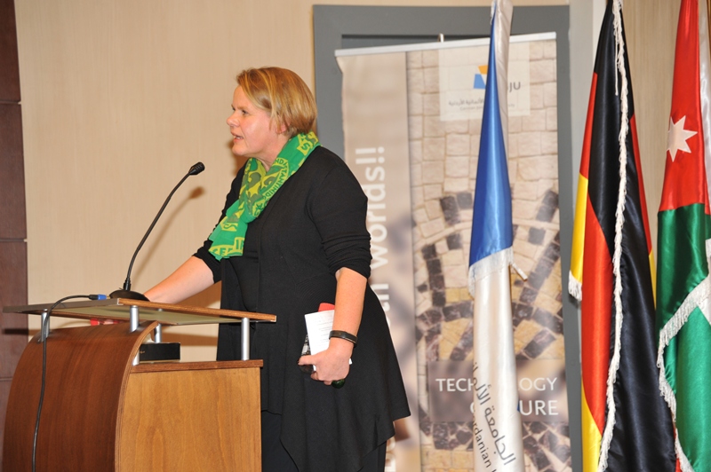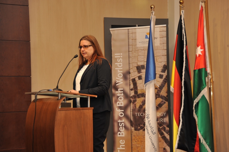 After expressing her thanks to EU, MEMR and GJU, Dr. Christina B. Class, one of the project’s coordinators at GJU, presented the project’s vision and stressed that capacity building for local engineers and technicians is an important part of the project. According to her, the project team from four different schools at GJU gains much of its strength from its interdisciplinarity. Finally she expressed the team’s hope that the “project, together with many other projects and efforts in Jordan, will shape how energy is produced in the future and how waste is looked at.”