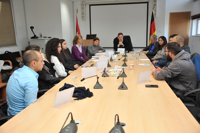 Aim of the visit was to inquire about possible ways to support different educational providers who cooperate with industry for the sake of creating more and better employment opportunities and thus to support the Jordanian economy. In this context, the Dual Studies project of GJU plays an important role for GIZ. The members of the delegation made it clear that this innovative approach, which is unique in Jordan, is regarded an effective tool, and that they will consider to make assistance available to realize this project.