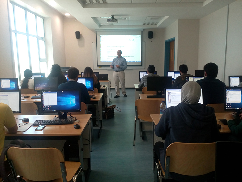 The course took place on Thursday 20/04/2017 & Saturday 22/04/2017 for 12 training hours in the premises of GJU’s recently opened Vocational Training Center (VTC) in which the special SAP software demo system was installed. The 20 students from different majors were introduced with a comprehensive case study to the logistical part of the SAP ERP.