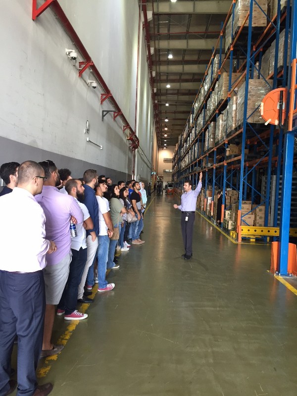 On Wednesday 26th of July 2017, a group of GJU Logistics students and their professor Dr. Ismail Abushaika, together with representatives of the Office for Industrial Links (OIL), paid a visit to Petra Trading & Investment Company in Naour. The group was very warm welcomed by Petra’s committed senior management and its employees and received an overview about the company’s mission, values and brands including a special briefing about its warehouse facilities. Thereafter, visitors from GJU went for a tour in Petra’s U-Shaped Warehouse to learn more about their inbound & outbound logistics activities, advanced storage systems and the developed material handling equipment. Students had the opportunity to watch warehouse operations “in action” and learn more about the warehouse’s mezzanine and satellite systems.