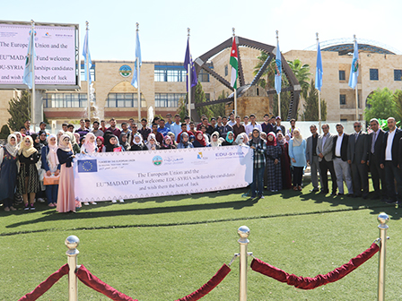On Thursday 5 October 2017, the Edu-Syria program managed by the German Jordanian University and funded by the EU Regional Trust Fund, the 'Madad' Fund, ran the last stage of granting Edu-Syria scholarships to Syrian refugee students for several bachelor programs at Zarqa University.