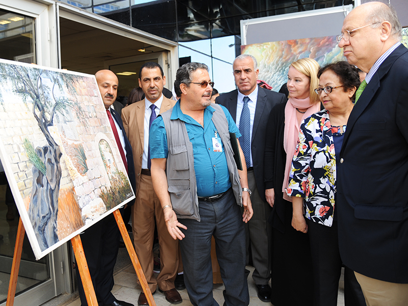 Coordinator of the exhibition, Mohamad Al-Souriki explained that the art work included many themes such as: Fighting terrorism, Humanitarian issues, Originality, National Unity, Jordanian heritage and Mosaic paintings.
