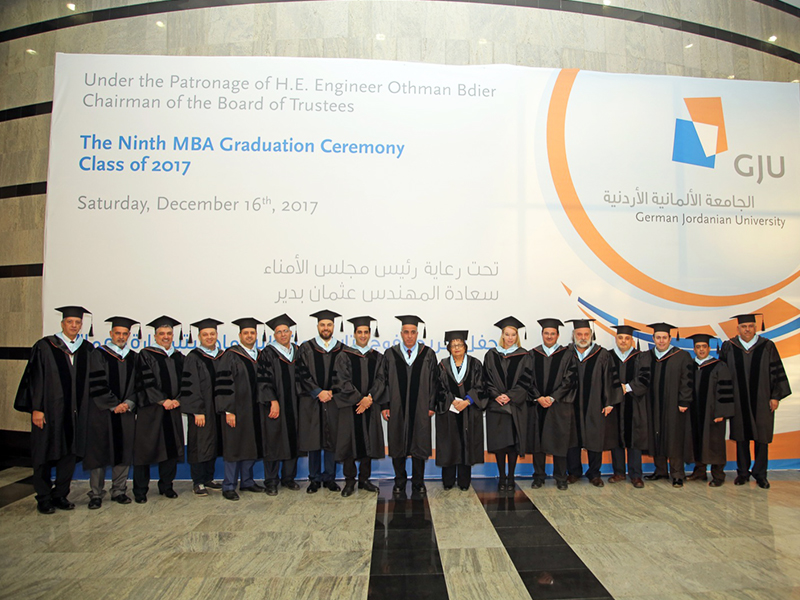 On Saturday 16th of December 2017, Under the Patronage of Chairman of the Board of Trustees of the German Jordanian University (GJU), Engineer Othman Bdier, The Graduate School of Business Administration (GSBA) celebrated the graduation of the ninth batch of the MBA students at King Hussein Business Park.