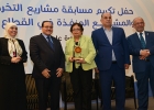 During the ceremony, students Tariq Abu Alrub, Mohammed Al Mulla from Mechanical Engineering Department and their supervisor Dr. Ismail Al-Hinti were honored for winning the first place for project entitled "Energy audit of Building C" at the GJU. It includes a detailed energy audit of one of the university's largest buildings Energy saving capabilities.