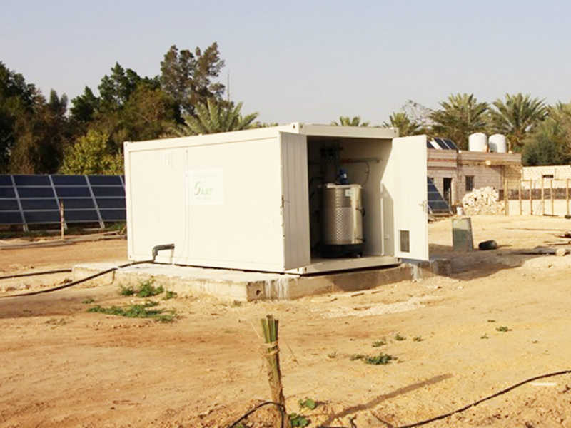 It is worth mentioning that the plant design is hybrid and includes PV cells and batteries to cover the plant’s electricity needs for pumping, stirring, measurement and control units as well as cooling and heating to ensure the required temperature range for anaerobic digestion. The produced biogas is filled in gas sacks as well as in small gas bottles and can be used for cooking.