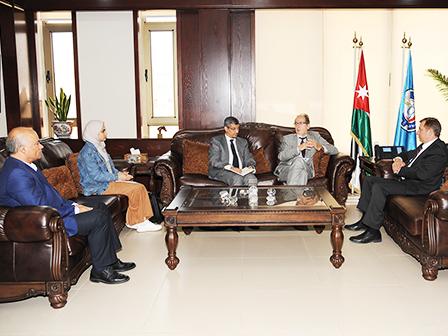 The visit continued to JUST; where the delegation met with university president Prof. Saeb Khreisat. Khreisat assured that JUST will continue to support EDU-JORDAN and is willing to discuss future cooperation, and to host the EDU-JORDAN exhibition next month in the World Refugee Day.