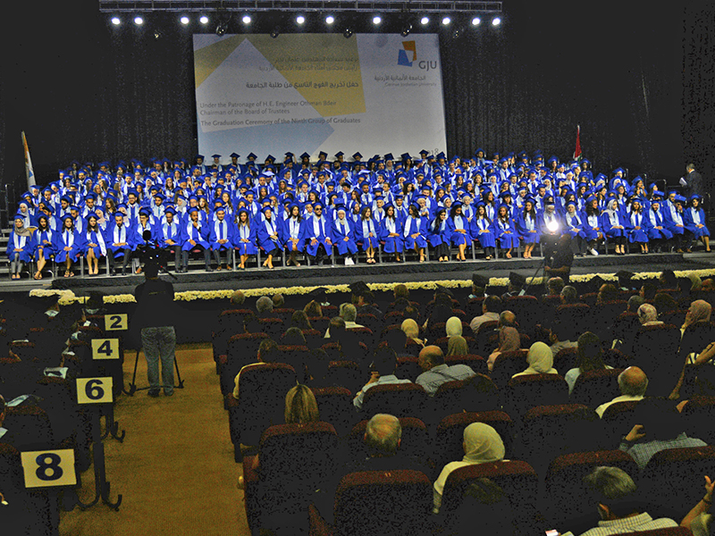 On Sunday 19 August 2018, under the patronage of HE. Engineer Othman Bdair, the German Jordanian University (GJU), celebrated the graduation of the Ninth Batch of GJU’s students with the presence of the president of GJU, Prof Manar Fayyad, Vice Presidents Dr. Atef Kharabsheh, Dr. Dorit Schumann, Board of Trustees Members, Academic and administrative staff.