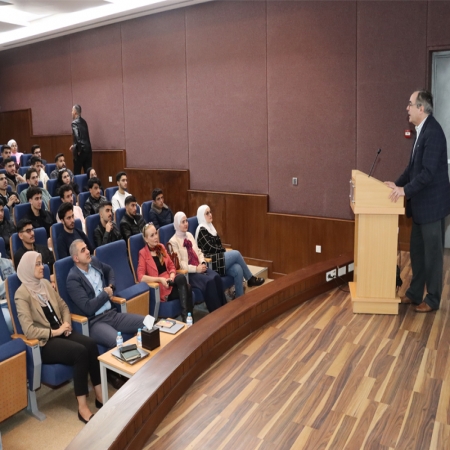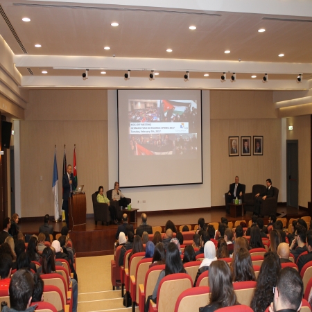 H.E. Faisal Al-Fayez delivers a lecture at GJU