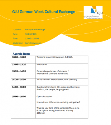 DATE: MONDAY 08.05.2023 at 6 pm (German time)/7pm (Jordan time)