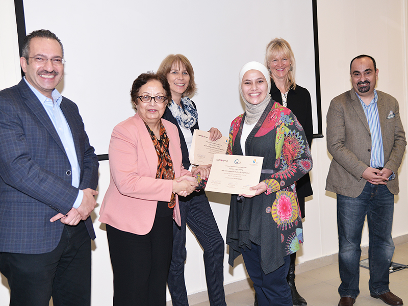Together with the President of GJU, Prof. Manar Fayyad, and Mrs. Britta Kähler, Director of the Office for Industrial Links, they handed over the- adapt2Job –certificates which are highly appreciated on the job market.