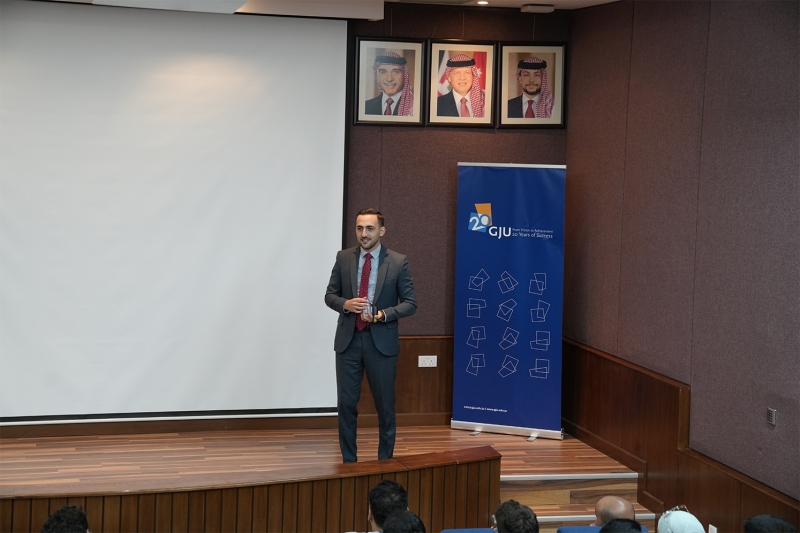 The Business School (BS) at the German Jordanian University (GJU) organized a special sales awareness session presented by Mr. Fadi Deabes, an expert in sales and business development, to enhance students' understanding of real-world sales practices. This session was held as part of the Fundamentals of Marketing course and was supervised by Ms. Lana Harb, the course instructor.