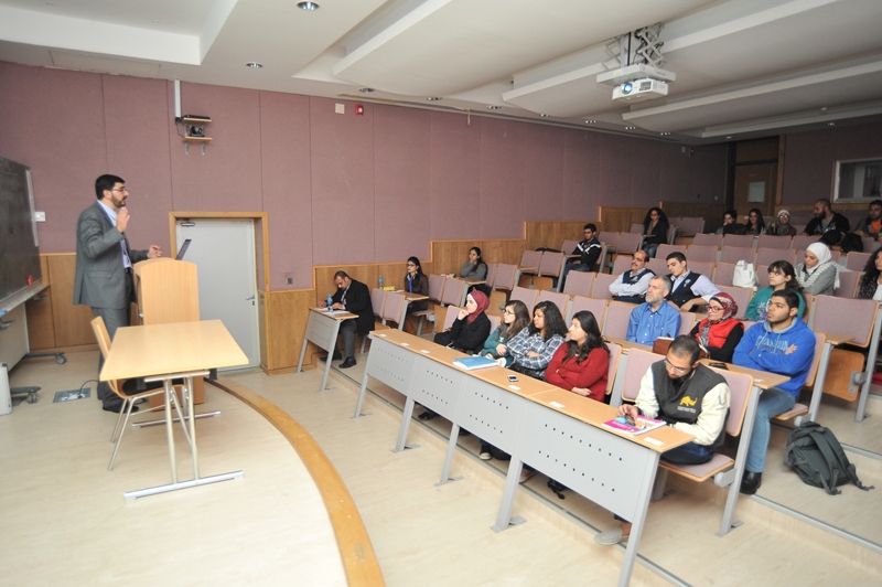 Dr. Qasem Abdelal, head of department of Water and Environmental Engineering, gave the lecture about climate change and human health, defining the climate change that is a change in the statistical distribution of weather patterns when that change lasts for an extended period of time and its refer to a change in average weather conditions, or in the time variation of weather around longer-term average conditions.