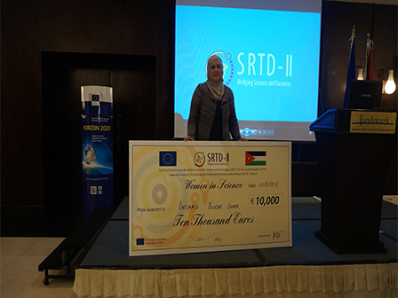Dr. inshad Jumh from the School of Basic Sciences and Humanities won the first prize in the distinguished exhibition on the occasion of the International Day for Women and Girls in Science in the EU-funded program “Support to Research, Technological Development and Innovation in Jordan-Phase II (SRTD II)”.