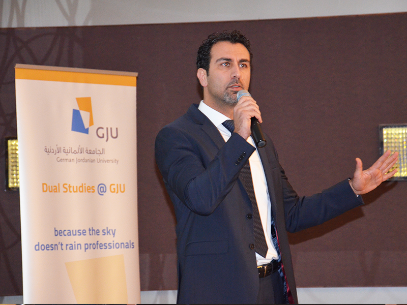 Dr. Imad Hatamleh the Academic Dual Studies coordinator was also one of the lecturers who carried out a Dual Studies Course, in which he was teaching students together with company employees. Within these courses, theoretical knowledge was combined with practical experiences and examples from the local market. The students had to reflect on the theory they have learned to the ‘on-the-ground-situation’ they have found in their partner-companies, the results students have delivered have been outstanding for young people who have just finished less than one year of University education.