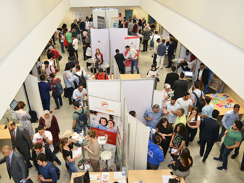 On Wednesday 18th of April 2018, The Office for Industrial Links (OIL) at the German Jordanian University (GJU), in cooperation with the Career Guidance Office of King Abdullah ll Fund organized the Eighth Annual Career Fair, under the patronage of GJU President Prof. Manar Fayyad, in the presence of GJU Vice President Prof. Dorit Shumann, Director of OIL Britta Kähler and number of GJU staff and academic members.