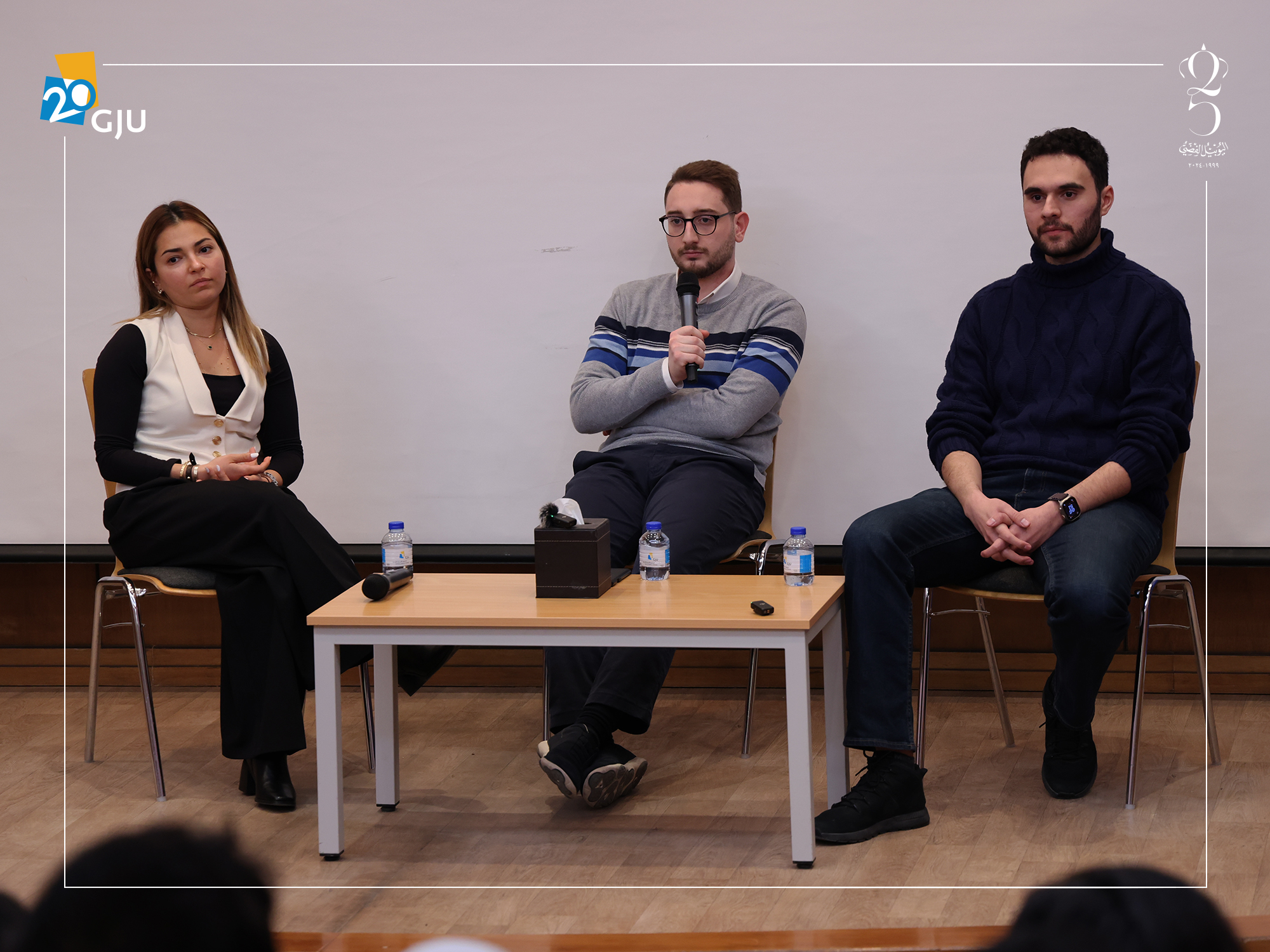 The Industrial Engineering Club at the German Jordanian University (GJU), in collaboration with Dr. Leena Abu Al-Hija, hosted a discussion session titled "Inside Consulting" with several alumni from the Faculty of Applied Technical Sciences. The session aimed to discuss the first steps after graduation.