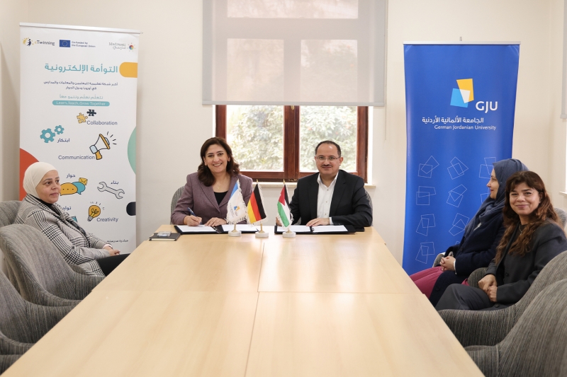 The German Jordanian University (GJU) has signed a cooperation agreement with the Jordan River Foundation (JRF) / Madrasati Initiative, with the aim of strengthening collaboration in implementing the E-Twinning Program and developing the capacities of professionals working in the education and social work sectors in Jordan.