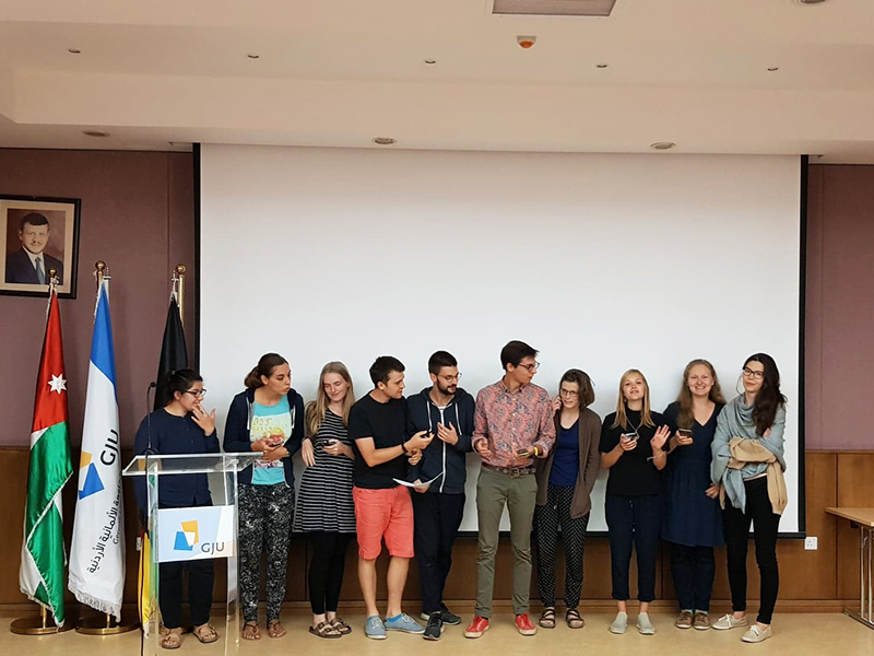 As for the newcomers, she assured them that they would benefit from the program in learning the Arabic language and the culture, urging them to blend with GJU’s students and explore as much as they can, announcing that next week a 90 exchange students are joining the university to study not only Arabic language but also some specialties.