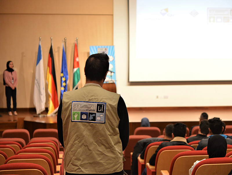 The Deanship of Student Affairs (DSA) at the German Jordanian University (GJU) celebrated the graduation of participating students in the I Participate Program, one of the Crown Prince Foundation programs, in the presence of the Vice Dean of DSA, Dr. Hani Mohsen, and the Director of the I Participate Program, Mr. Iyad Al-Rashdan.