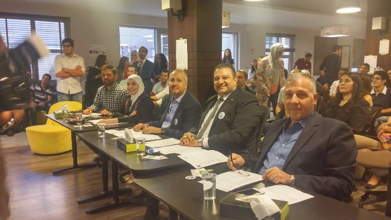 On Saturday evening the teams had to be ready to give the final pitches of their weekend projects. The jury consisted of 5 respected judges representing different sectors: Mr. Fadi Marji (Dept. Managing Director, Izzat Marji Group), Mr. Sami Jarrar (HR Director, Umniah), Mr. Faisal Hakki (CEO, Oasis500), Ms. Ruba Al-Zu'bi (CEO, EDAMA) and Prof. Natheer Abu Obeid (President, GJU).