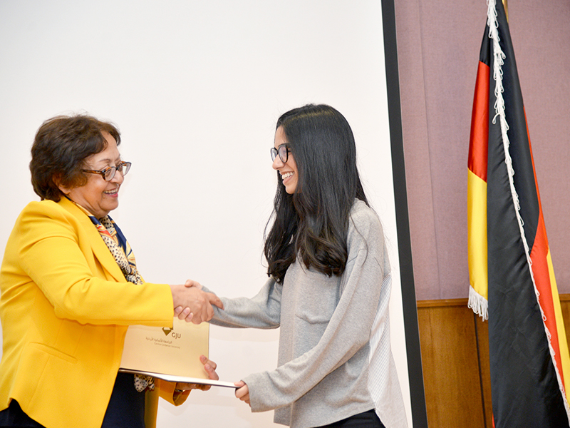 On Monday 14th of May 2018, under the patronage of the president of the German Jordanian University (GJU), Prof. Manar Fayyad, the Road Safety Center of Excellence (RSCE) held an honoring ceremony for the participants in the Road safety Education in elementary schools program, which was launched in April 2018 in Alkindi School in Marka-Amman.