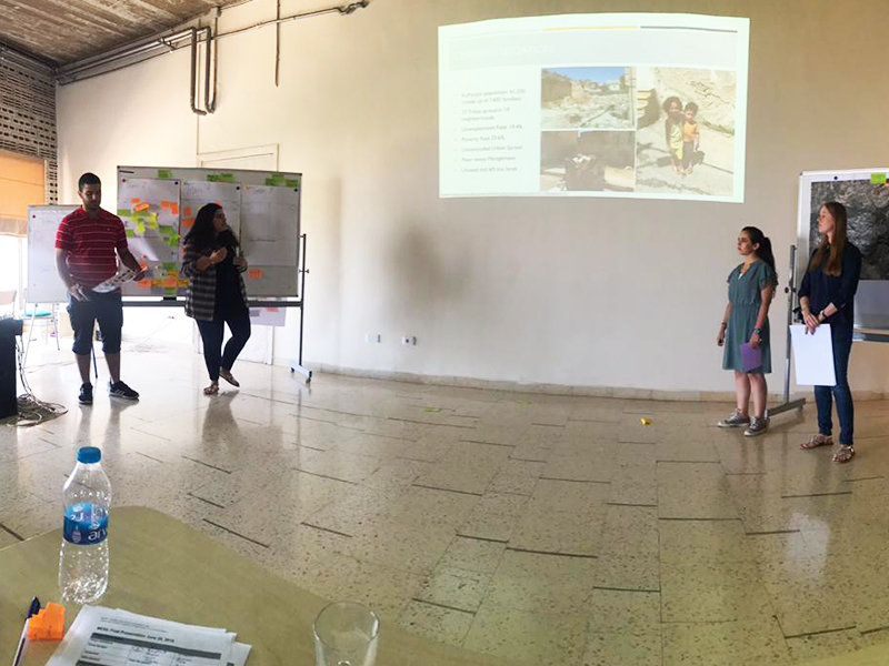 Teachers involved on-site from GJU were Dr. Omaimah Ali and Arch. Tala Awadallah and Arch. Kawther Rayyan (SABE), and Dr. Aziz Madi from the School of Management and Logistic Sciences (SMLS), in addition to Arch. Nayla Al Aqel from American University of Beirut (AUB), and Arch. Samar Nazer from Berzeit University. From HfWU professor Dr. Dirk Funck, who was responsible for the overall responsibility, as well as Dr. Ellen Fetzer and Simon Leberl as student tutors.
