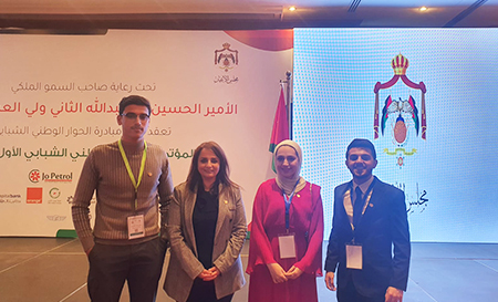 GJU was represented by the Dean of Student Affairs (DSA), Dr. Thelal Oweis, students Ahmed Al-Sharairi, Malak Jodeh, and Ibrahim Mosleh.