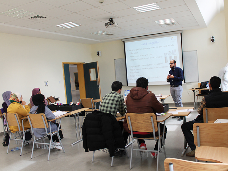 Dr. AlNuman stated that holding the workshops and training courses came with guidance of the university president, Prof. Dr. Alaa Al-Din Al-Halhouli, who stressed in many occasions on the importance of providing the students and specialists in the local community with new and useful skills, and representing the role of the university in community services and awareness raising in various fields, including vision rehabilitation.