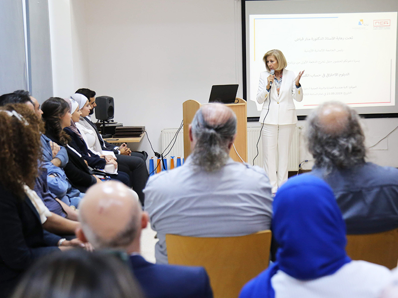 The President of GJU Prof Manar Fayyad thanked all those who contributed to the success of this program; the School of Architecture and the Built Environment (SABE), the Consultation and Training Center (CTC) and Nabih Elias Azzam & Partners (NEA) for their efforts in supervising and guiding the inputs and outputs of the educational process to ensure the highest quality standards of the professional diploma program in Quantity Surveying.