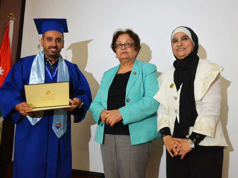 On Monday, September 9, 2019, in cooperation with the Consultation and Training Center (CTC) at the German Jordanian University (GJU), the Academy of Management Sciences graduated students of professional diplomas in several fields, in the presence of the President of GJU, Prof. Manar Fayyad, the CTC Director, and Dr. Omar Shubailat.