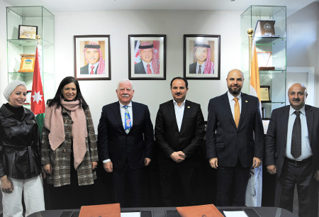 The signing was attended by the Vice President, Prof. Malek Alsharairi, the Dean of the SABE, Dr. Maram Tawil, Dr. Farah Al-Atrash, and the Director of the consultation and Training Center, Abdalhakeem Arbiyyat.