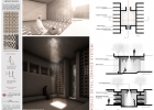 This project – which the jury describes as a solid proposal that revolutionizes the architectural typology of cemeteries – proposes underground cemeteries. This can free land in densely populated neighborhoods to be used as a park or social space. Courtyards allow daylight to reach the lower level, where funerals are held and the graves are located. The project also includes a hospice, a traditional community building, a devotional space, a library, and a community kitchen.