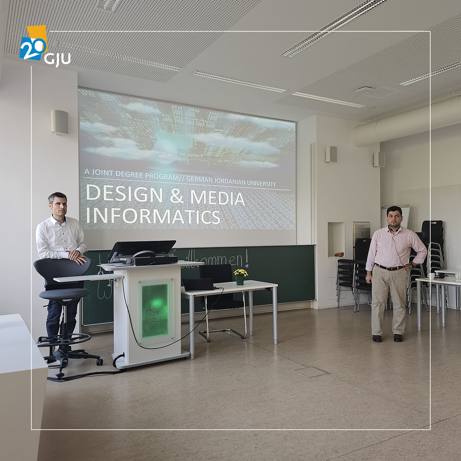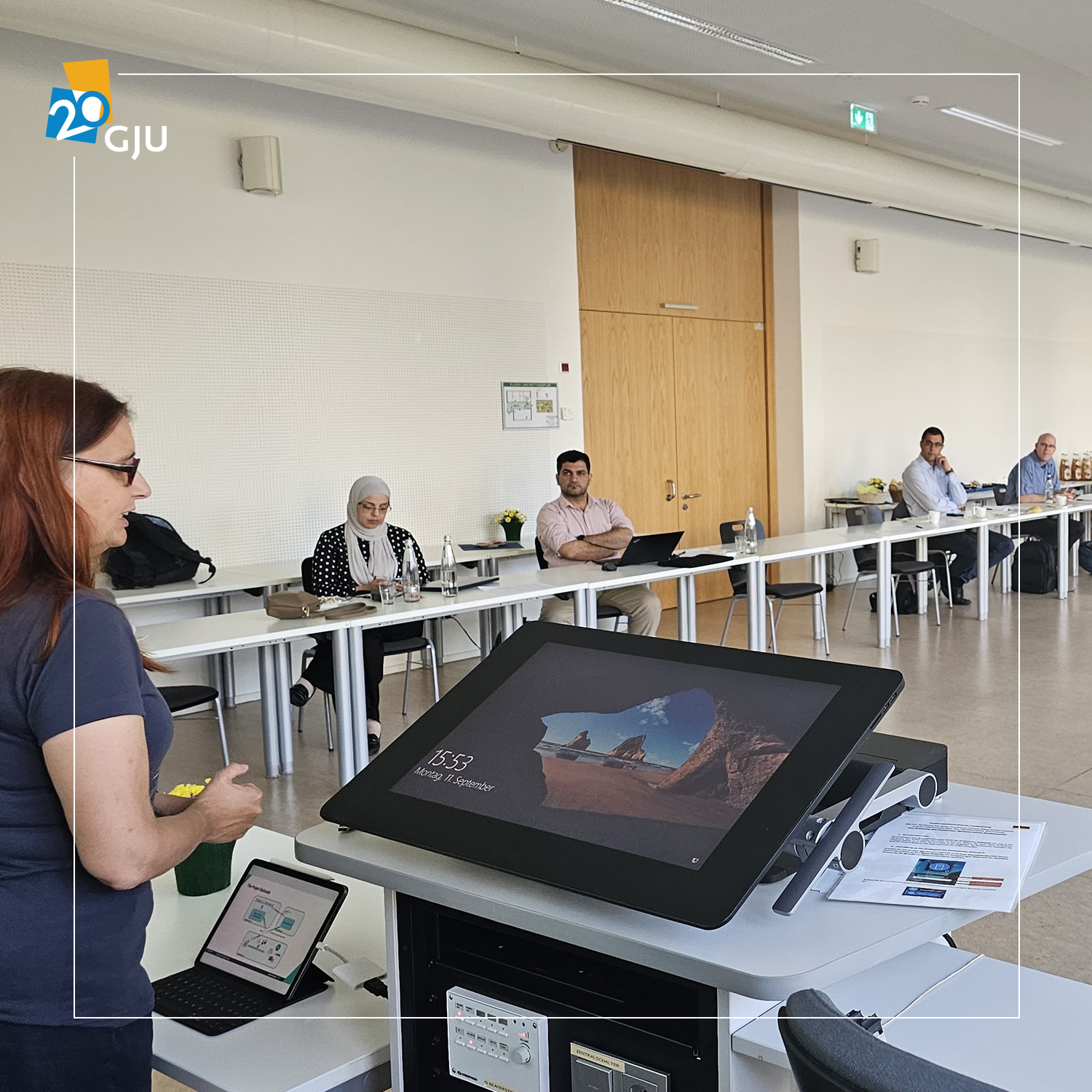The GJU School of Electrical Engineering and Information Technology (SEEIT) held its annual meeting on September 11–13, 2023, hosted by TH Fulda. Attendees included representatives from Jordan, such as Dr. Dhiah el Diehn Abou-Tair, Dr. Abdullah Alfarrarjeh, and Eng. Samira Khraiwesh, as well as key figures from TH Fulda and other German partner universities.
